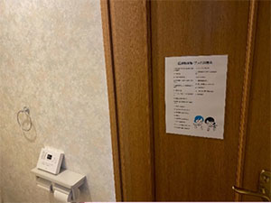 左の写真は弊社のトイレですが、このような形で多くのクリニック様に掲示して頂いています。もちろんお名前は書けませんが、様々なメディアに取り上げられている、あのクリニック様にも、このクリニック様にも、掲示されていることを、このクリニック様をコンサルティングさせて頂いている私は、よく知っています(笑)