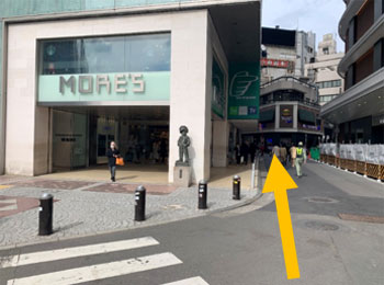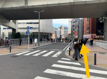 左前方に「横浜モアーズ」の建物がありますのでそのまま前方に向かって下さい。