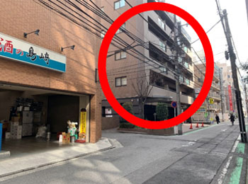 この建物の5階がアンリミテッドの事務所です。この通りは車が多いので、お気をつけください。