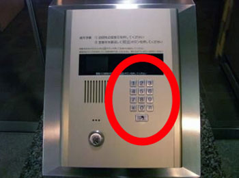 16.エントランスに入ると、奥にインターフォンがありますので、こちらで「505」+「呼」を押してください。